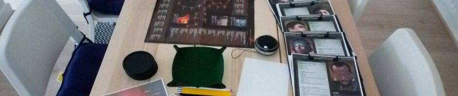 Soundtrack was the official Coriolis music, though I didn’t major on it in play. I have small skulls as counters for the Dark Points that deliciously ebbed and flowed throughout the game.