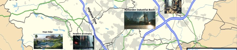 The game reminds me a little of my own Tripod (Traits in Pools of Dice) game, and looks good for some fast inventive play. I hope to have a go at the Cyberpunk Neon City Overdrive, having started to mess about with a location map of my home town…